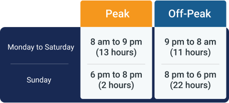 Below is a table that summarizes Peak and Off-Peak hours of the week for your easy reference: